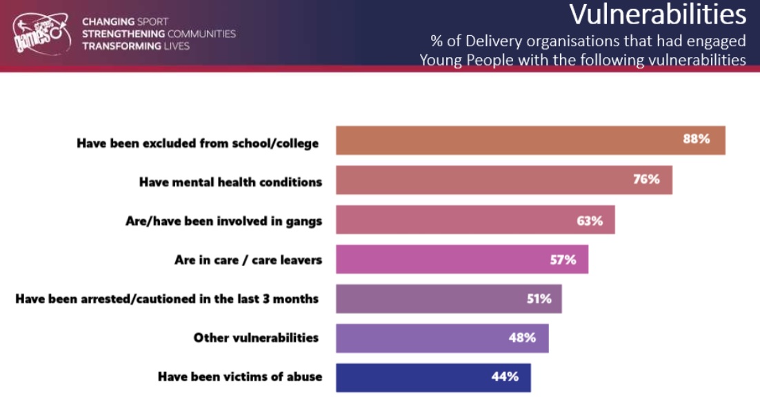 The Youth Justice Sport Fund, which ran from November 2022 to March 2023, was initiated to support vulnerable 10-17-year-olds who are at risk of involvement in crime, anti-social behaviour and serious violence, using the vehicle of sport and physical activity.