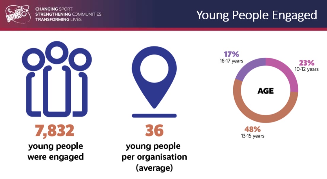 Of the 7,832 young people who took part, 48% were in the 13-15 age range, traditionally the bracket of young people who typically withdraw from sport participation. This was seen as another positive element of the project’s impact.